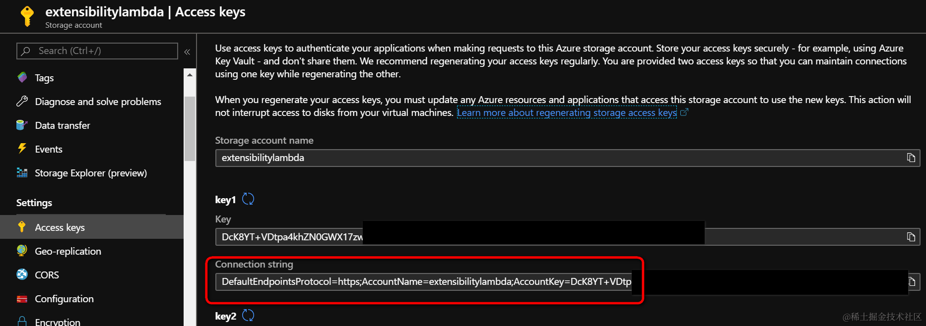 找到value里AccountName后面的extensibilitylambda对应的storage account: