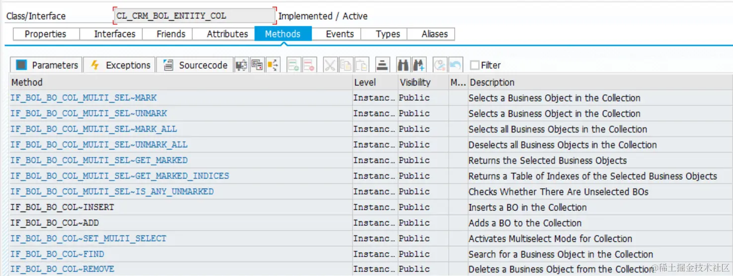 事实上SAP CRM就采取了这种实现思路,CL_CRM_BOL_ENTITY_COL,这个工具类,从名称上就能判断出它是BOL实例的存储容器,提供了容器内BOL实例元素的插入,删除和遍历的功能。