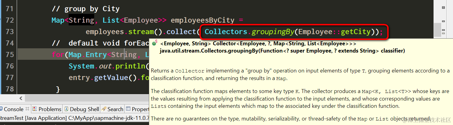 employees.stream().collect( Collectors.groupingBy(Employee::getCity,