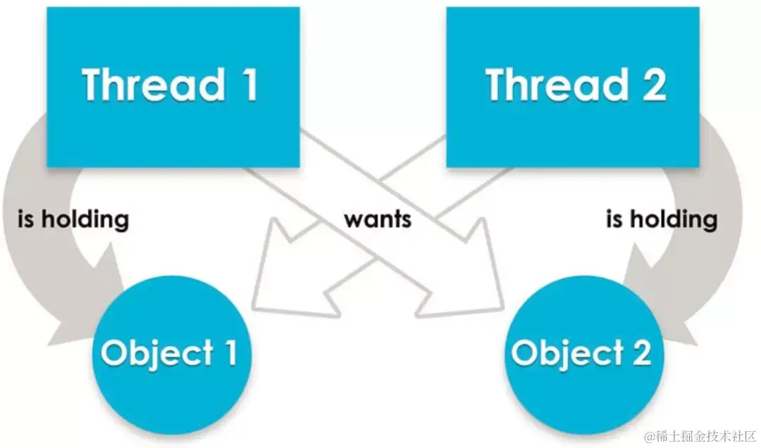 线程2持有资源2,试图持有资源1;
