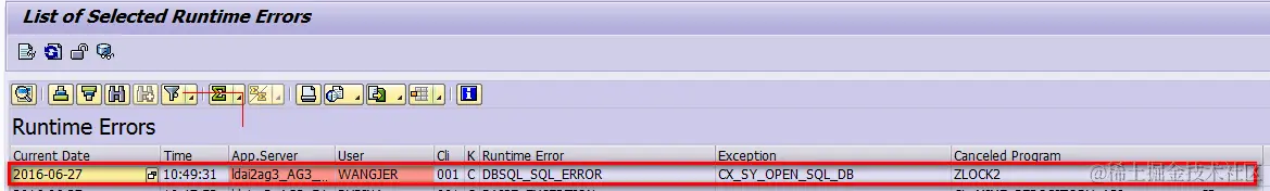 此时ABAP Kernel检测到程序ZLOCK2发生了死锁,抛出一个运行时异常,结束了ZLOCK2的执行。程序ZLOCK2持有对记录Z02的锁也自动释放了。最后的结果是,程序ZLOCK1成功地对记录Z02上了锁。