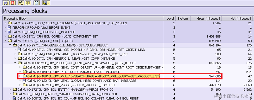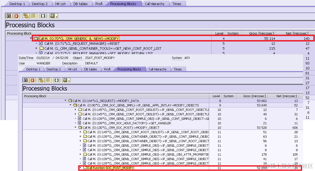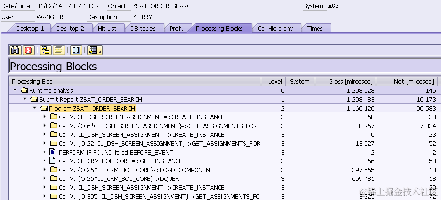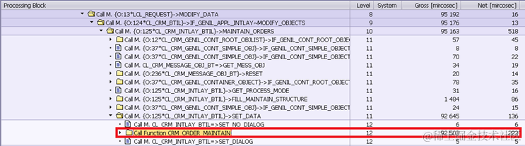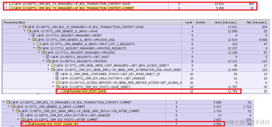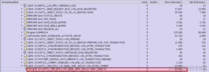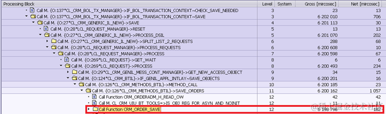 Note: 97 milliseconds spent on program SAPMSSY4 should be deducted since it contains the execution of routines registered on COMMIT, such as middleware logic, the workflow event, update function module etc. Those are nothing to do with BOL & Genil framework processing.