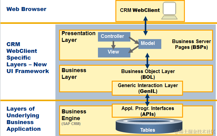 According to the formula, the more complex the application API is, the less performance loss caused by additional layer overhead in Web client UI. Also in reality, the performance bottleneck resides in application API, not in the call stack of BOL & GenIL delegation. So in my opinion, performance reason should NEVER be used as the excuse when you do not use Webclient UI as the first choice for custom development in CRM.