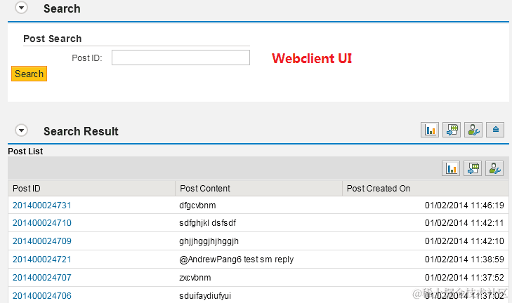 - Click post ID hyperlink of one search request row, then we can navigate to detail page.