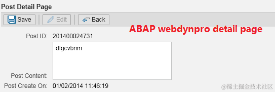 - Click Edit button in detail page to switch to change mode, make some changes on post content, click save button to persist the change.