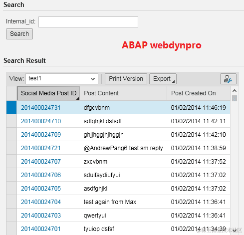 - Click search button to get several BO instance ( Social post) in result table. I choose the new Genil model named CRMSM delivered in CRM7.0 EHP3, as the structure of it is quite simple.