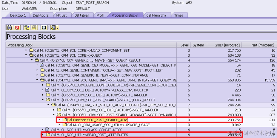 I have written the following report to perform Social post search via cl_crm_bol_core~query. Then I can get the exact time spent on a(x)|x=CRMSM and calculate the o(x)|x=CRMSM.