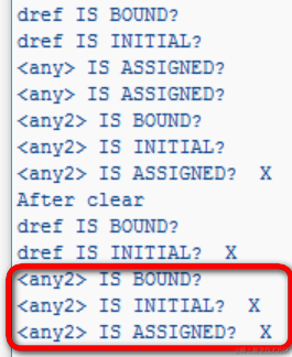 现在dref并不是未指向任何引用,而是指向一个无效的引用,因此dref同时满足IS NOT INITIAL和IS NOT BOUND.