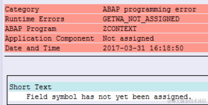运行时会抛出GETWA_NOT_ASSIGNED错误:Field symbol has not yet been assigned.