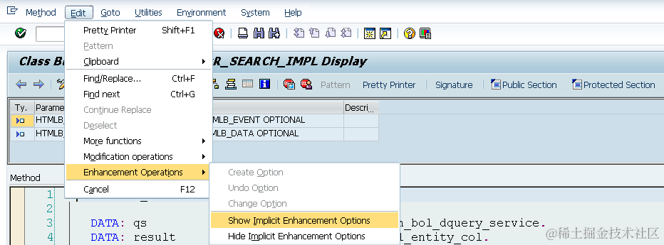- Display all possible implicit enhancement options. It is only possible to create implicit enhancement within these options. The available options