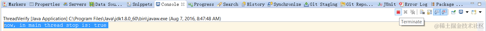 The working thread is started to do increment on i and after one second, the flag is set as true in main thread. It is expected that we could see print out in working thread: “Thread stop i=”. Unfortunately it is NOT the case.