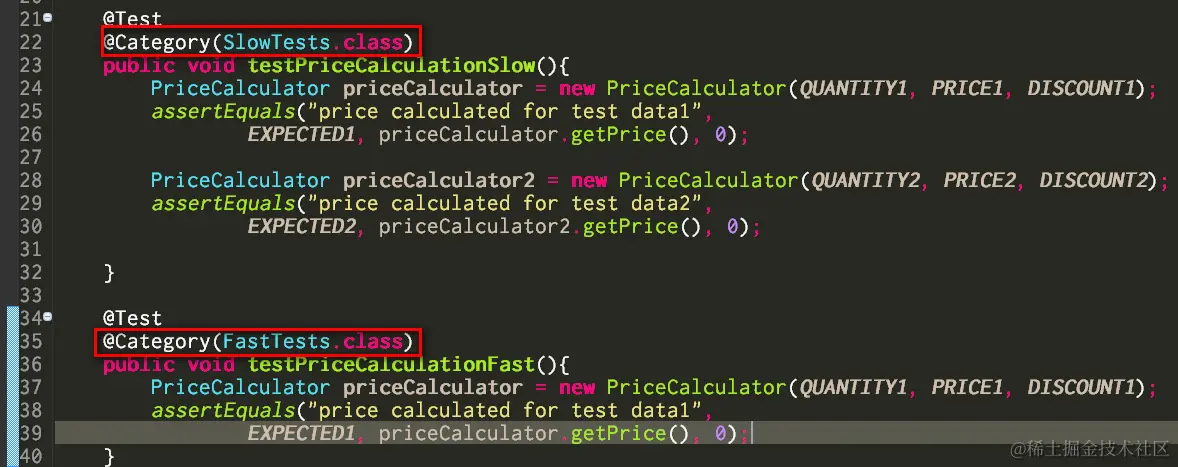 (2) In your test case class, categorize your test method using @Category annotation: