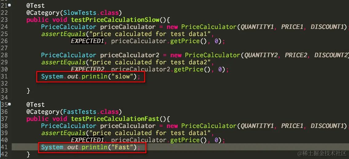 Before test, in order to prove that Slow method is NOT really executed, I add a system.out.println in each method:
