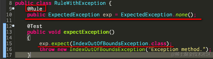 With the help of @Rule, we can achieve the same as @Test(expected=).