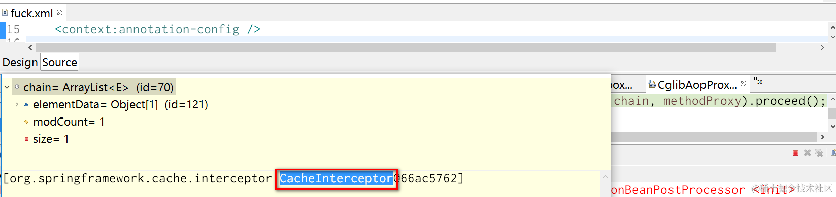In this example, there is no more cache evaluation and cache fill logic. All such stuff are taken over by Spring under the hood and completely transparent to application developer, with the help of following bean configuration in xml: