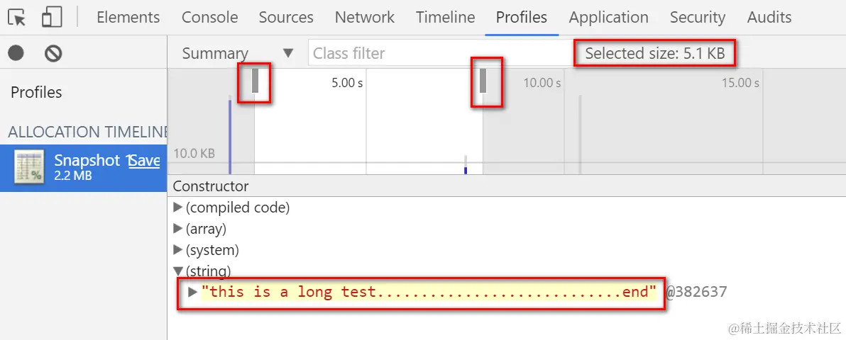 There is another kind of profile in Chrome development tool which can give you an overview about timeline of memory allocation: