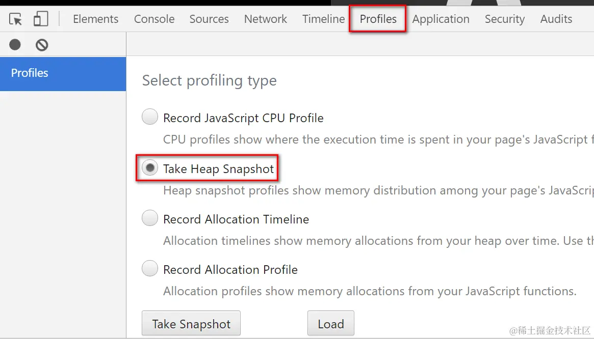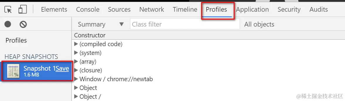And switch to Profiles tab again to make the second snapshot: