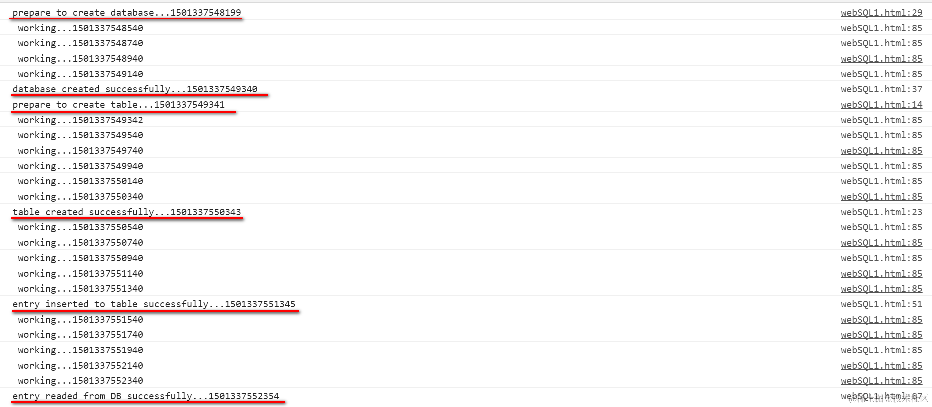 In order to achieve the simulation that each step of webSQL is a time-consuming operation, I wrap the real logic into setTimeout with a certain time delay.