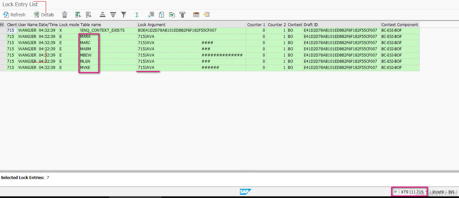 Now locks related to a series of Material tables could be found in tcode SM12: