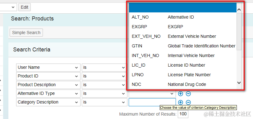 When you choose “Alternative ID Type” in search Criteria view, the corresponding ID type will be displayed as drop down list automatically. How is this behavior implemented?