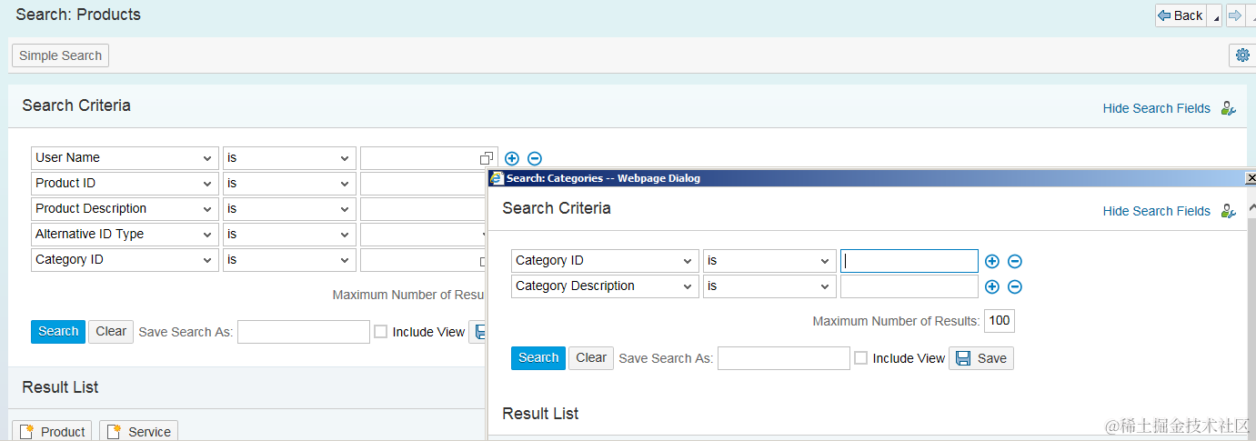However, for category id, it is rendered as a popup dialog: