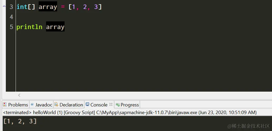 在Groovy里,成对的大括号是声明闭包用的,因此定义数组的语法改用中括号: