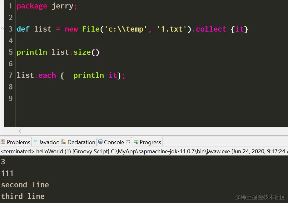 def list = new File('c:\\temp', '1.txt').collect {it}