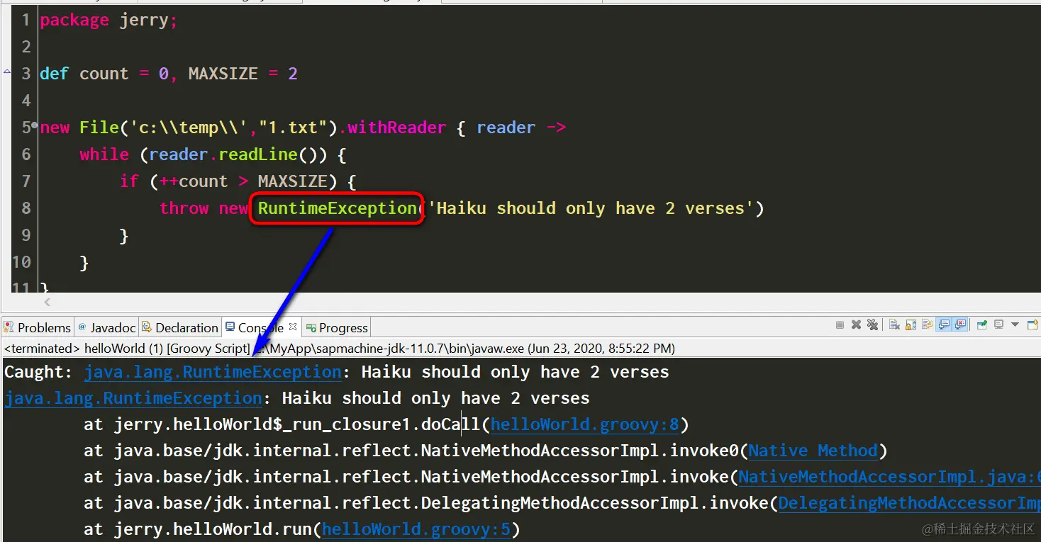 throw new RuntimeException(‘Haiku should only have 3 verses’)