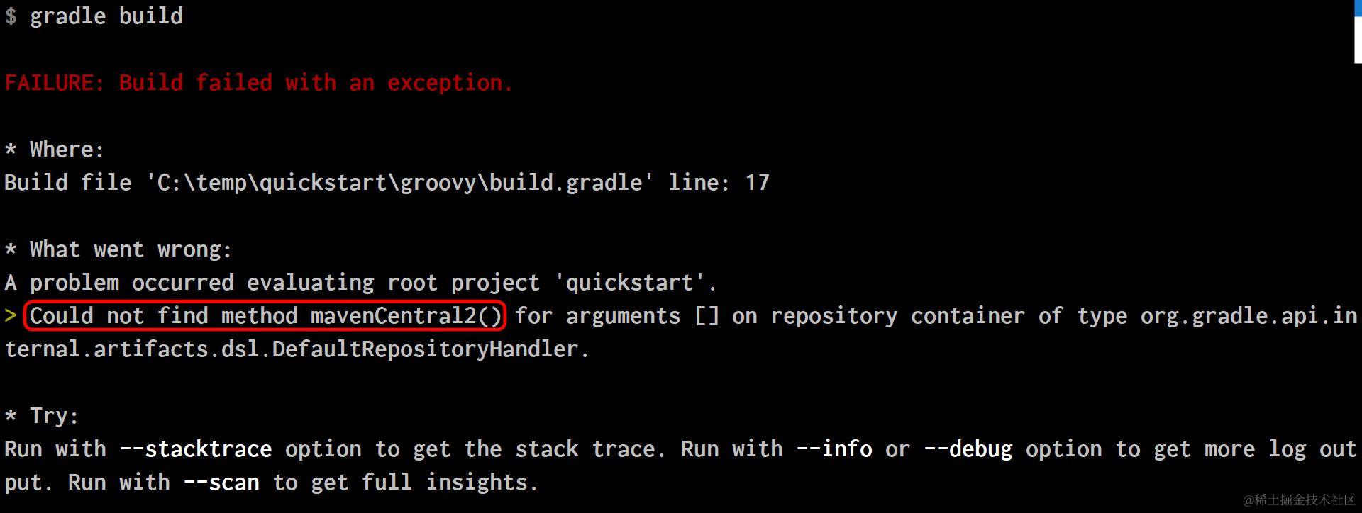 错误消息:Could not find method mavenCentral2() for arguments [] on repository container of type org.gradle.api.internal.artifacts.dsl.DefaultRepositoryHandler.