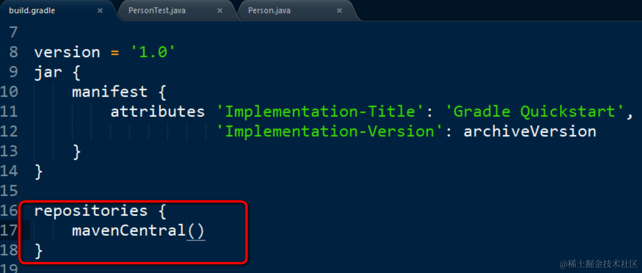 因此build.gradle里下列这段配置信息,意思是告诉Gradle从Maven中央仓库获取工具库的内容,即url repo.maven.apache.org/maven2/