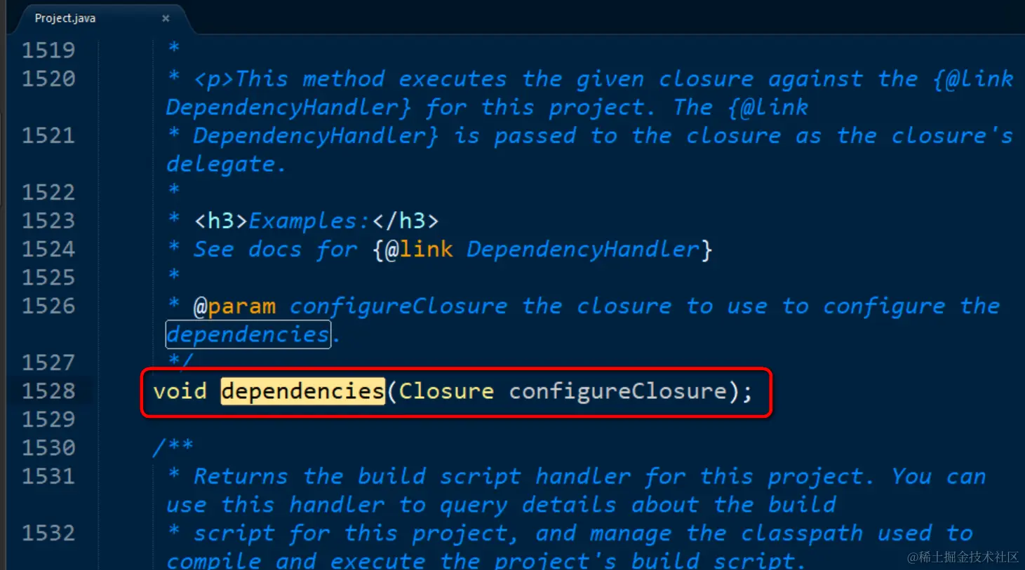 打开Project.java, 查看关于dependencies的说明: