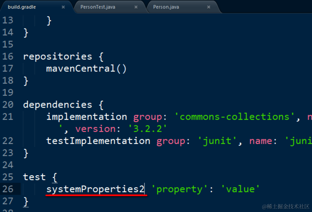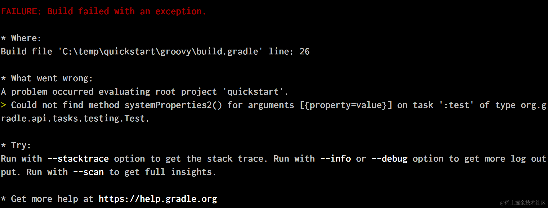 Could not find method systemProperties2() for arguments [{property=value}] on task ‘:test’ of type org.gradle.api.tasks.testing.Test.