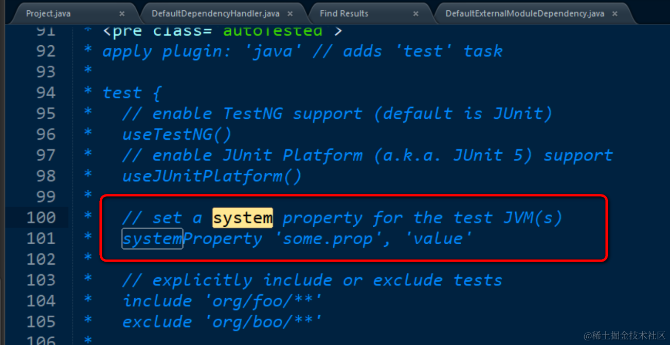 在这个类的注释里就能看到给测试jvm设置system property的语法: