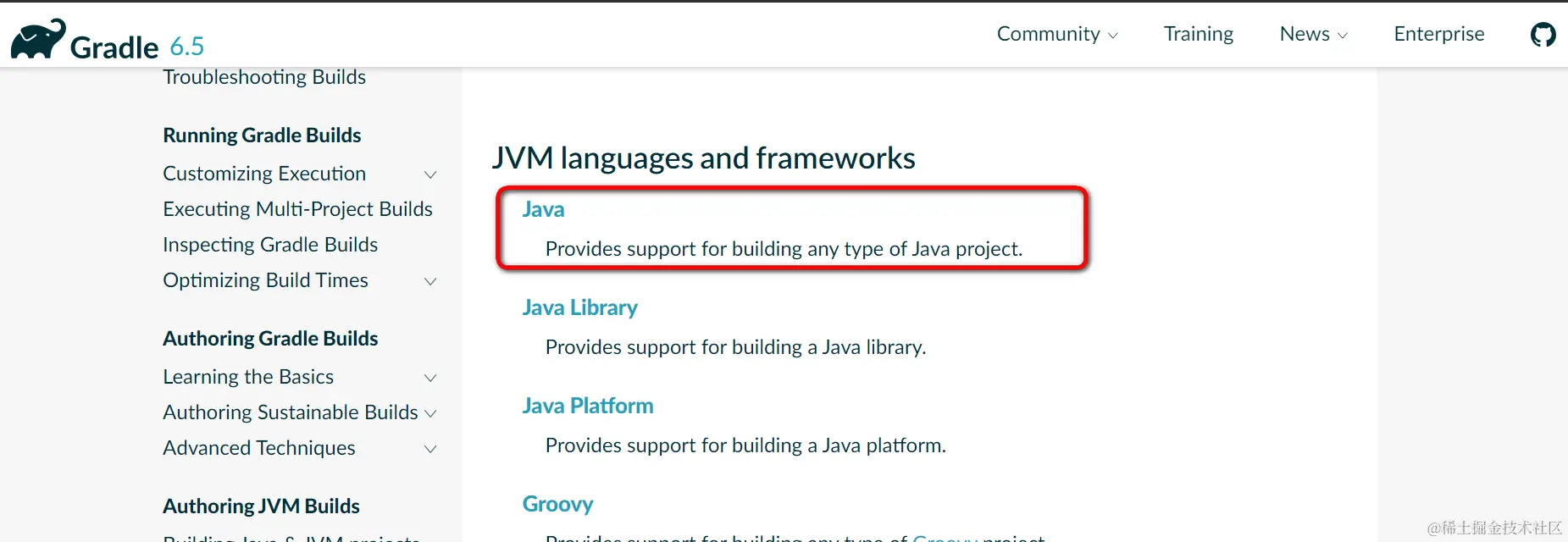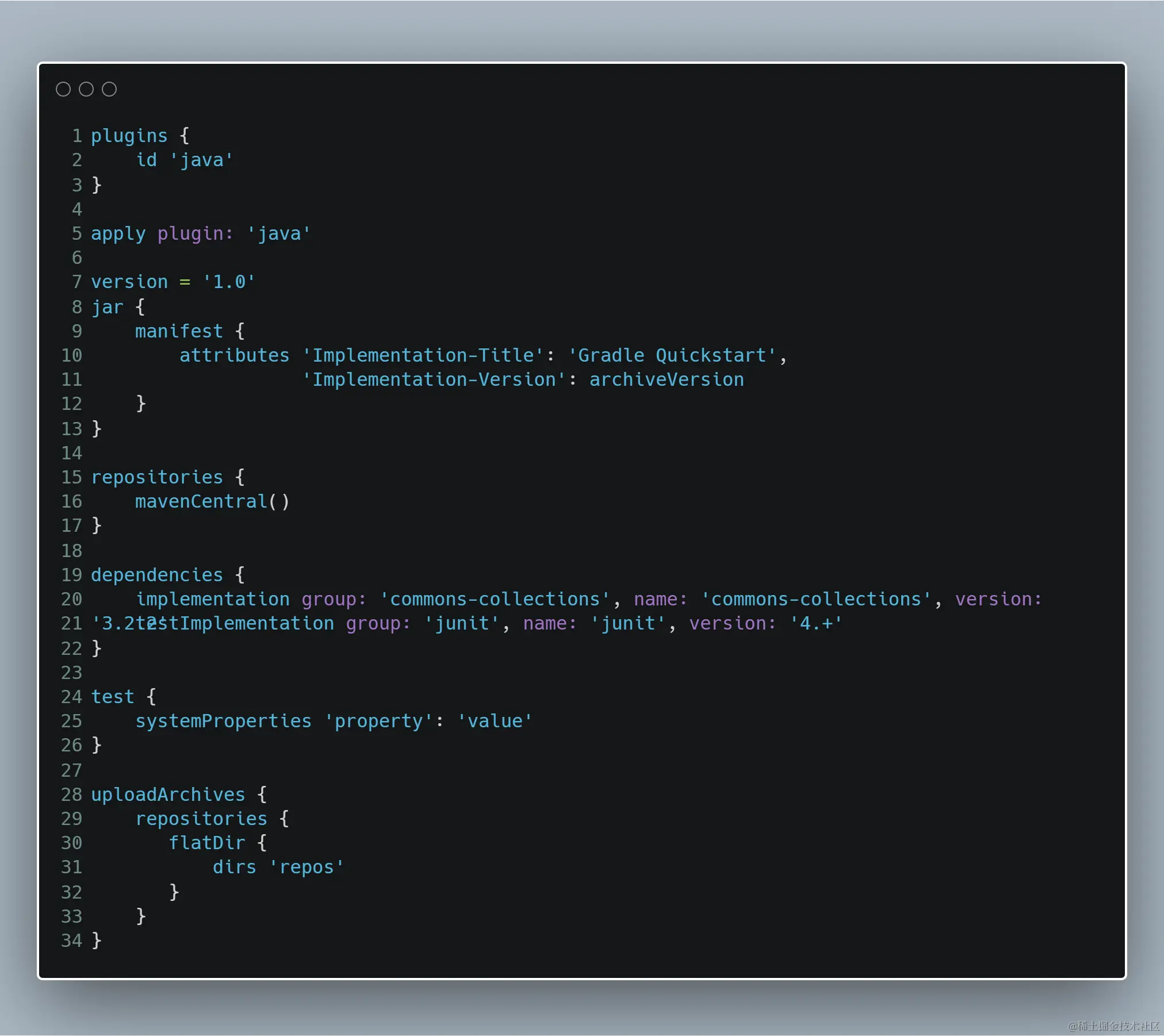 第2行申明了标准插件java的使用。在下面这个链接里能查询到所有Gradle标准的插件: