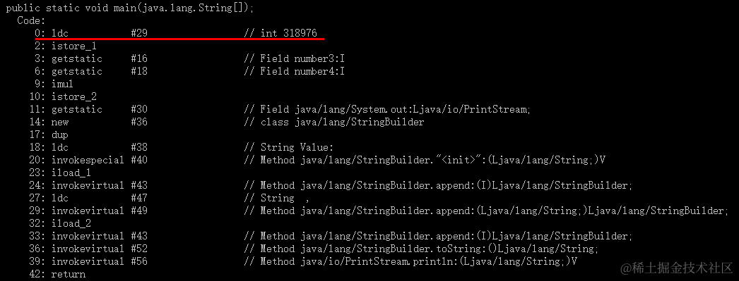 Here we can know the fact that the value of result 512 * 623 has already been calculated during compilation and stored in constant pool index #29.