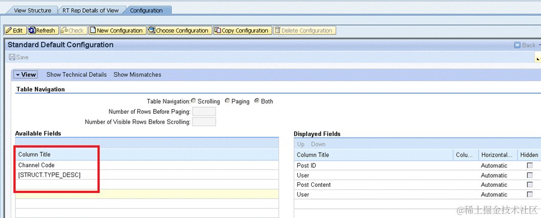 The variable lt_all_field in line 13 stores all fields which will be visible in configuration and personalization popup dialog.