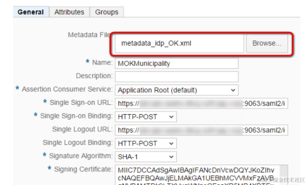 此处要导入从IDP导出的元数据: