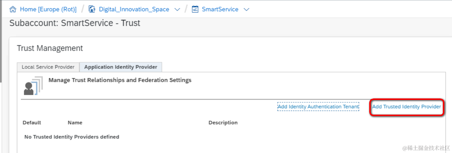 Add Trusted Identity Provider: