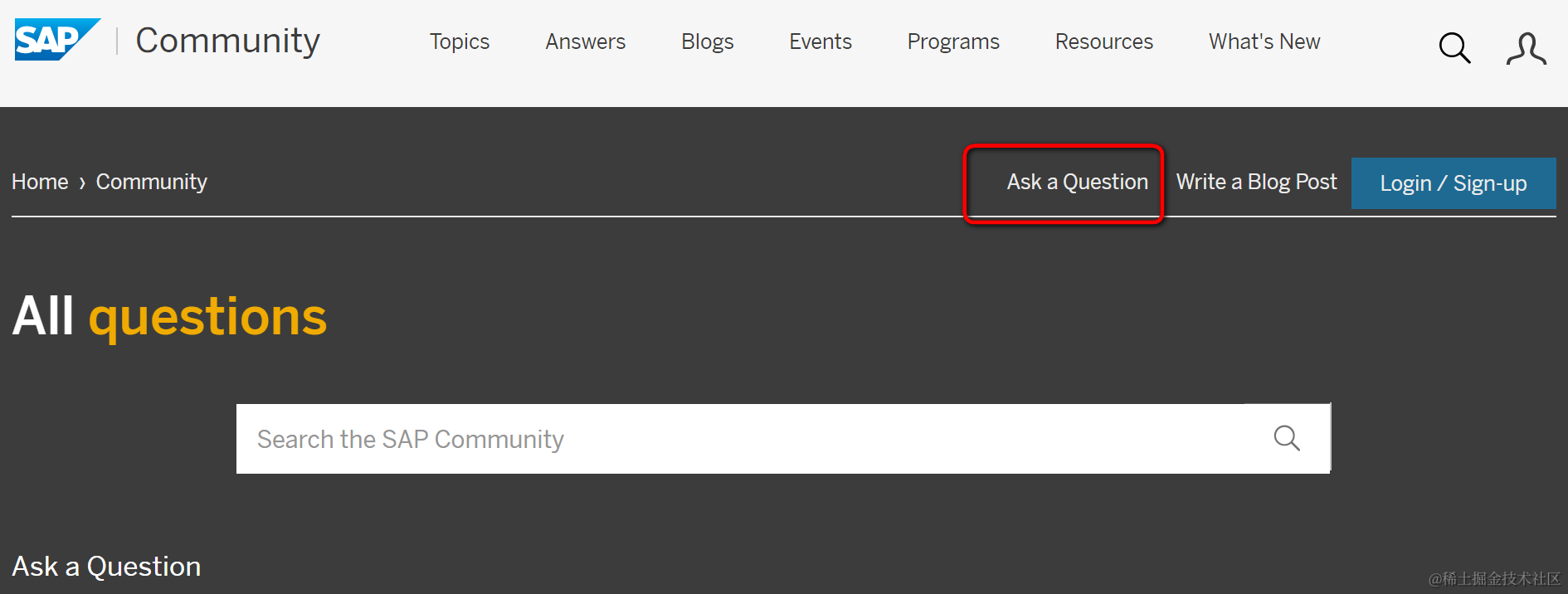 如何在SAP社区上查找其他SAP从业者遇到的问题或者提新问题 已注销 2021-04-26 110 阅读1分钟 SAP社区网址: answers.sap.com/index.html 此处根据关键字搜索其他SAP从业者遇到的问题: 如果关键字搜索不到任何已有问题,自己也可以提一个新问题,点击Ask q Question提问: 要获取更多Jerry的原创文章,请关注公众号"汪子熙":