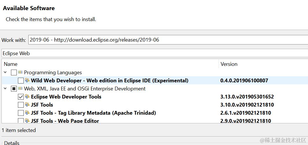 使用Install New package安装必要的资源。首先弄清楚自己使用Eclipse的版本号:2019-06release的4.12.0: