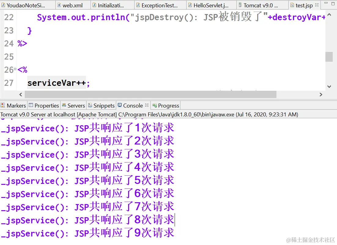 System.out.println("_jspService(): JSP共响应了"+serviceVar+"次请求");