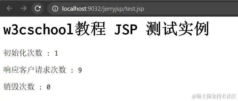 浏览器打开该jsp,每F5刷新一次页面,发现复写的jspInit始终只被调用了一次,而serviceVar计数器每次刷新会加一。