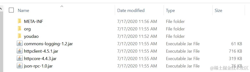 打包好的jar包,解压后发现也包含了使用到的库文件jar: