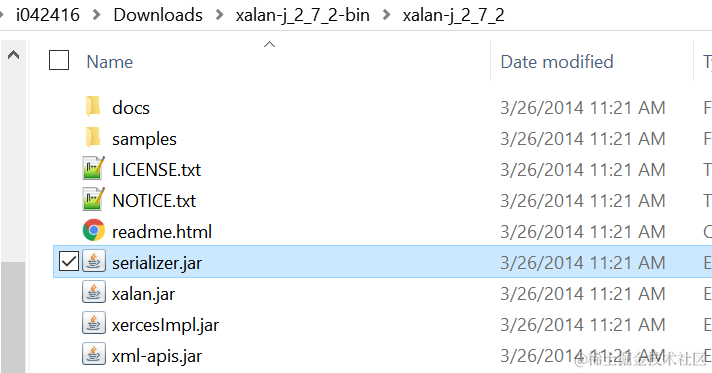 我在下载xalan.jar的压缩包里找到了StandardJarScanner processURLs寻找的serializer.jar: