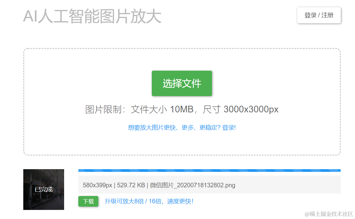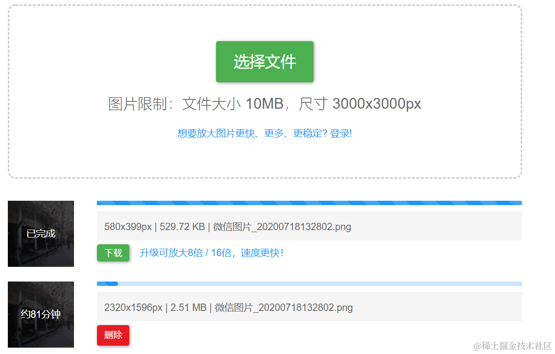 点击开始,稍等片刻后图片就放大成功了: