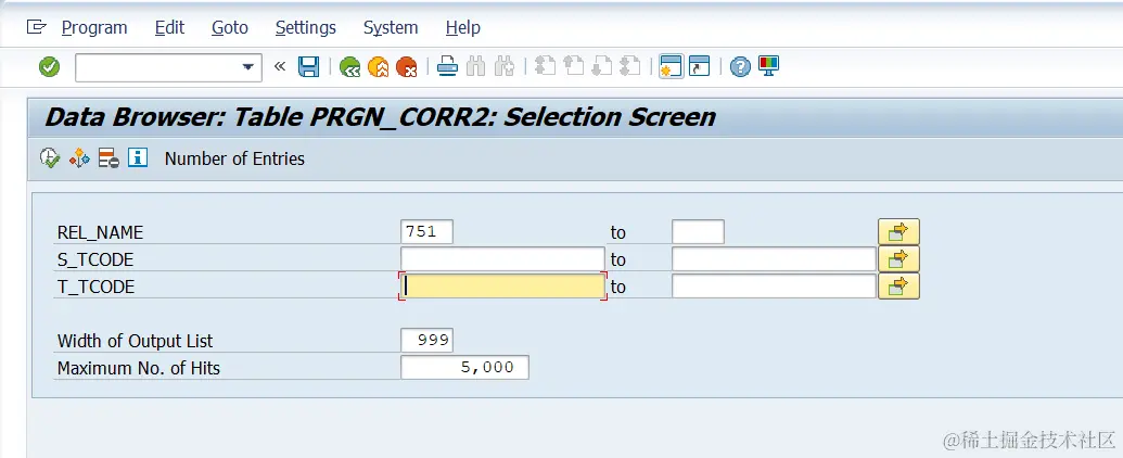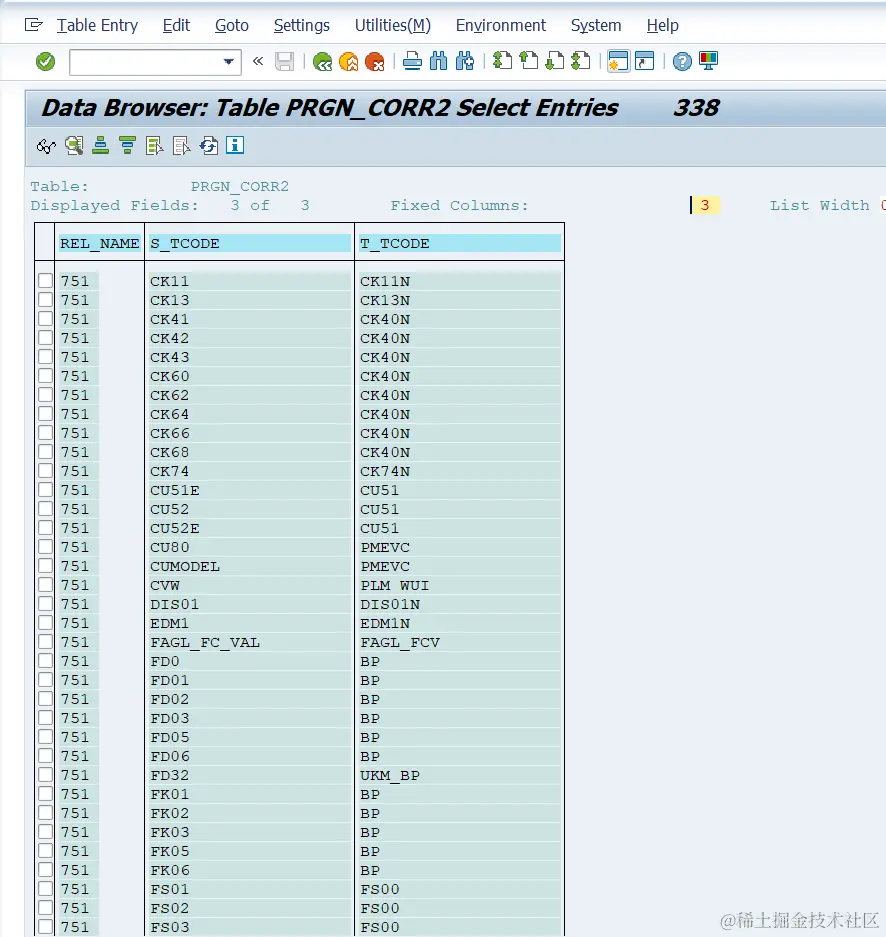 如何找到SAP ECC事务码升级到S4HANA后对应的新事务码 已注销 2021-04-26 50 阅读1分钟 在S/4HANA系统里,SE16,查看表PRGN_CORR2的内容: REL_NAME(release name)指定成751: S_TCODE是ECC里的事务码,而T_TCODE是对应的S/4HANA的新事务码。 要获取更多Jerry的原创文章,请关注公众号"汪子熙":