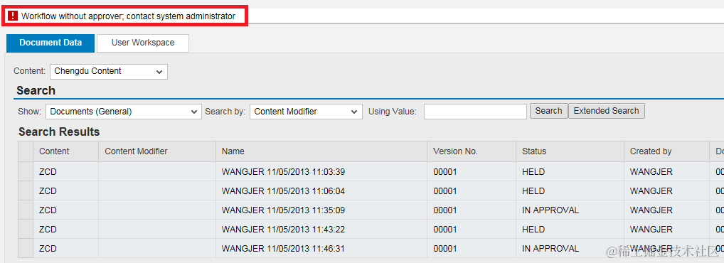 However during my testing, I meet with error message “Workflow without approver”, although I have maintained the approver in customizing correctly.