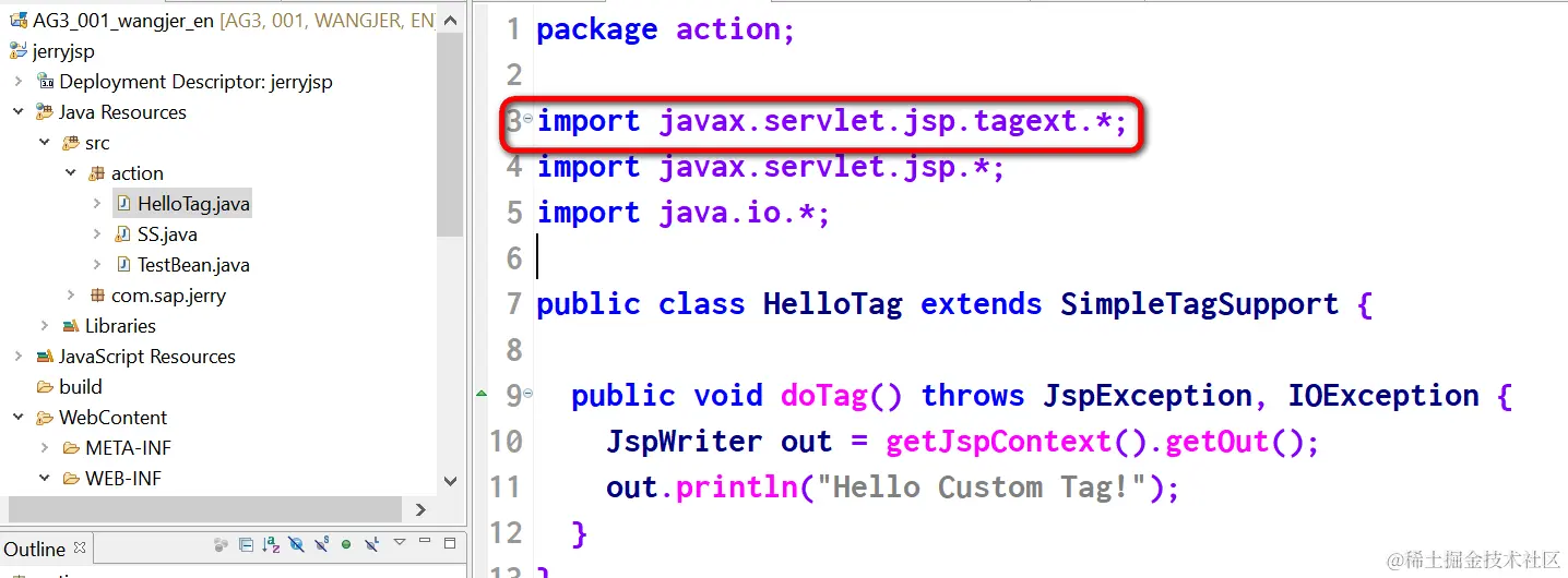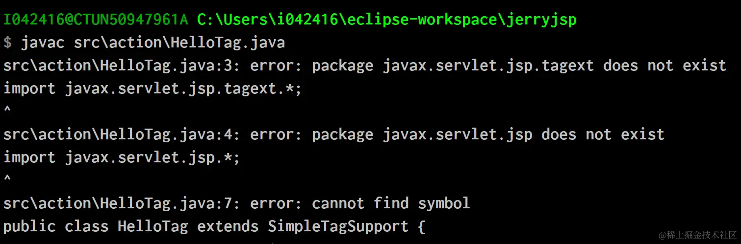 javac -classpath .;C:\MyApp\apache-tomcat-9.0.29\lib* src\action\HelloTag.java