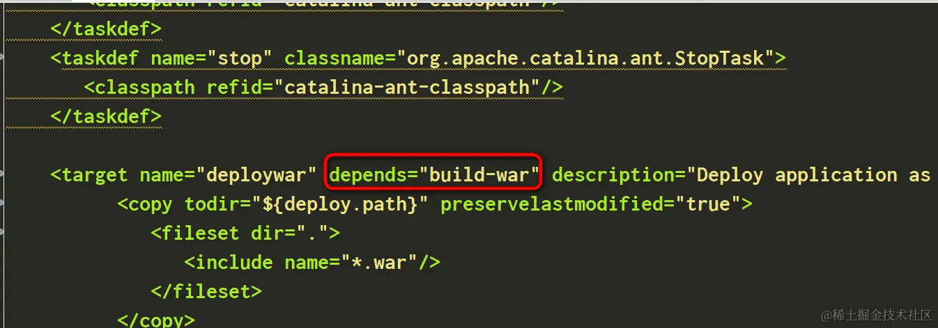 target deploywar依赖于build-war: