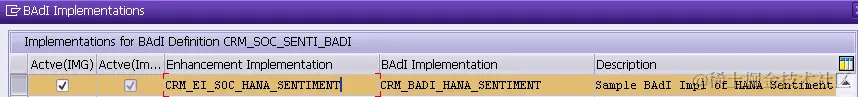 We have delivered a sample implementation which could calculate the sentiment of the text posted in twitter & facebook like “Positive, Negative, Strong Positive, Neutral”, with the help of SAP HANA Text Analysis Engine. Of course you could use your own TA engine within that BAdI enhancement implementation.